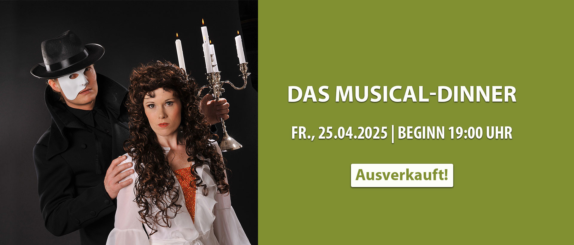 Freuen Sie sich auf einen wunderbar unterhaltsamen Abend mit Aperitif, einem köstlichen 4-Gang-Menü und: mit einem Livekonzert berühmter Musical-Songs aus Highlights wie Evita, Cats, Phantom der Oper, Cabaret und vielem mehr. Es erwarten Sie großartige Künstlerinnen und Künstler mit begeisternden Stimmen und beeindruckenden Kostümen. Hinzu kommt unser bester Service und das ganze Können unserer fantastischen Küchencrew.
